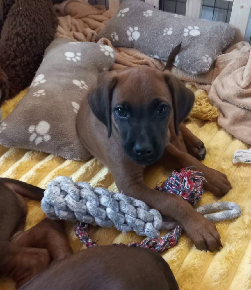 Die Welpen werden bei uns im Haus geboren und in Haus, Hof und Garten bis zum Auszug umsorgt, wir sind 24/7 für die großen und kleinen Löwenjäger mit verantwortungsvoller Hingabe bereit.
